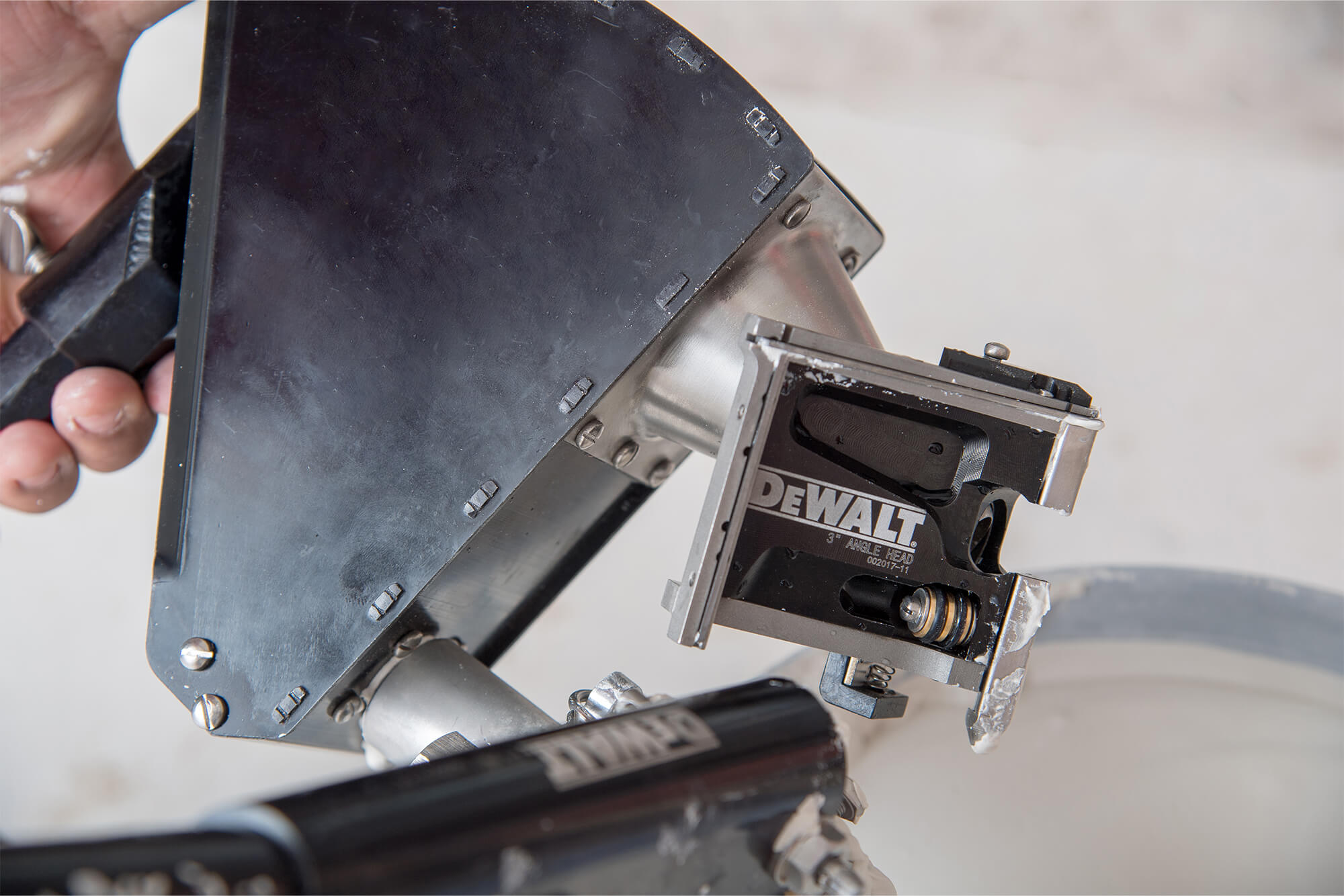 For mounting, DeWalt Corner Finishers feature a universal stainless steel ball socket that will fit the ball-end handles, applicator boxes, and compound tubes from leading drywall tool manufacturers. The ball-end snaps securely into the ball socket using a locking retainer clip. The corner finisher can be easily removed using the spring-loaded quick release tab.